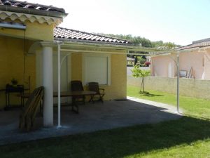 Pergola avec fronton volutes et ronds et avancee